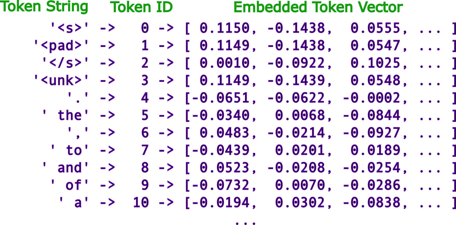 So we go from words → tokens → vectors, with each vector having some “meaning”.